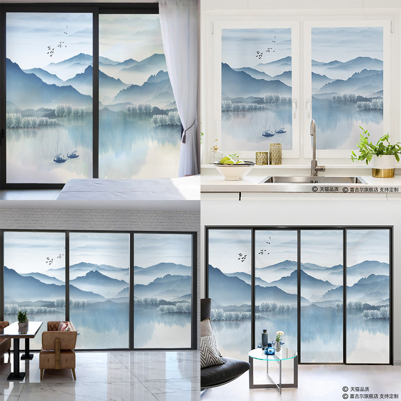 Custom glass sticker windows Living room Ramen frosted adhesive film shading sunscreen Landscape Painting Dressing Room Anti-Peep