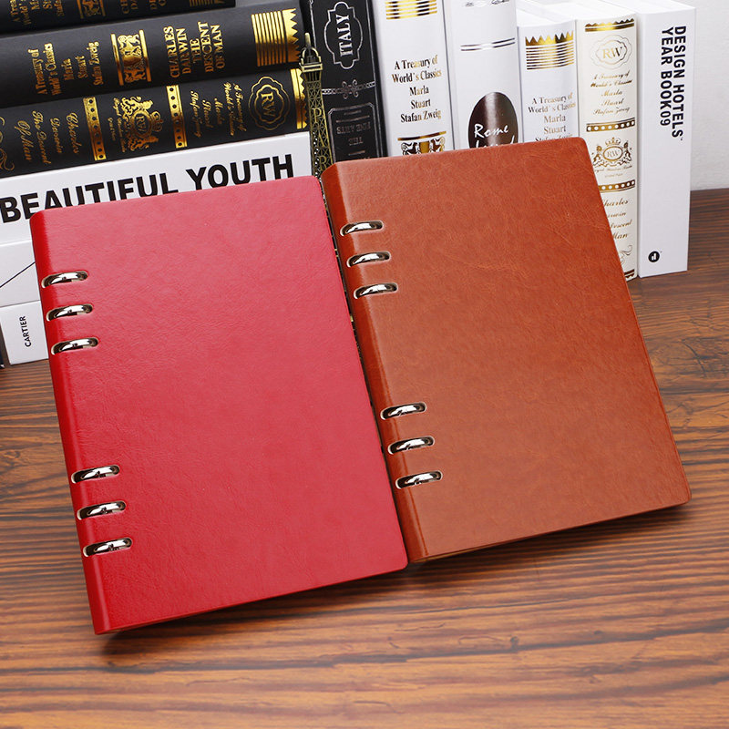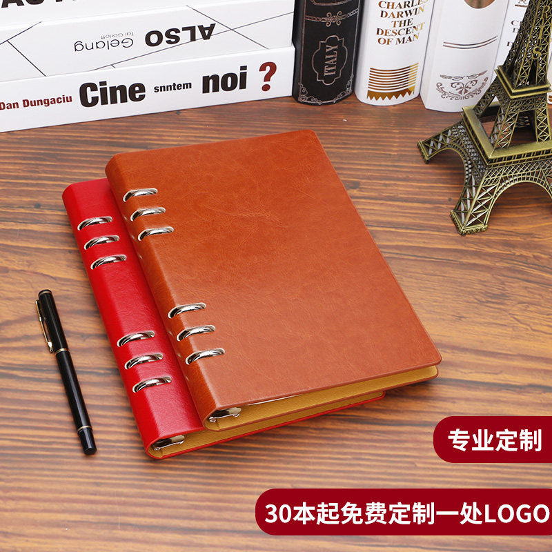 Notebook Sub A5 Loose-leaf Hollowed-out 6 Holes Business Office Notepad Thickening Hard Leather Face Working Meeting Day Remember Bento University Student Detachable Enterprise Unit Imprint Bronzing Custom LOGO-Taobao