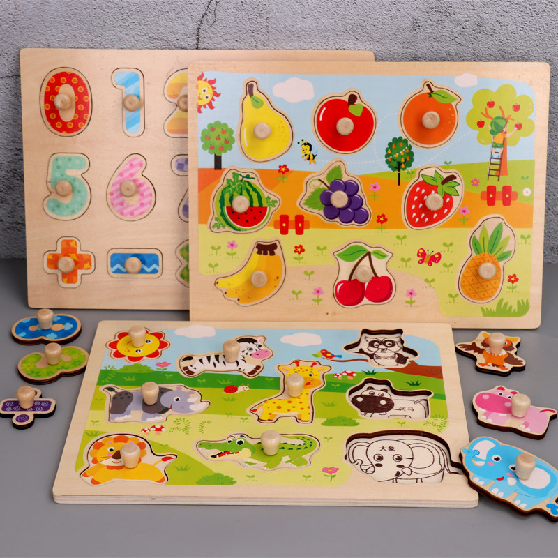 Baby Mon Early Teach Shape Cognitive Jigsaw Puzzle Hand Grip Inlaid Plate One Year 3 Puzzle Force Development of Brain Toys 2
