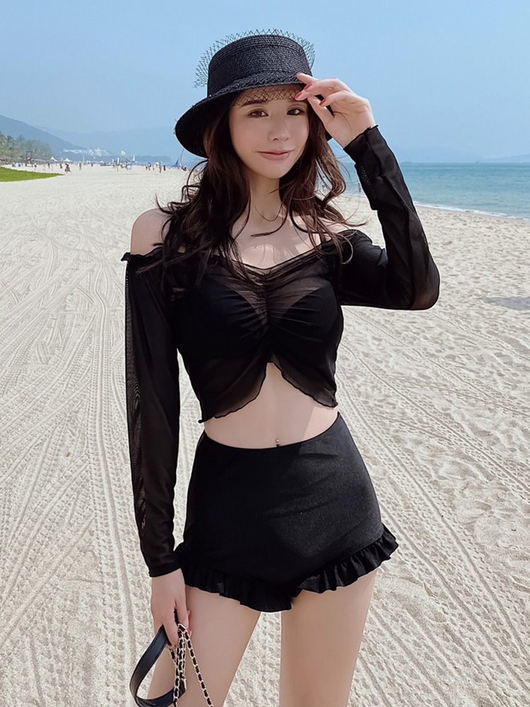 Vido new small breasted two-piece bikini high waist cover swimsuit long sleeve sunscreen shirt with three sets of swimsuit women