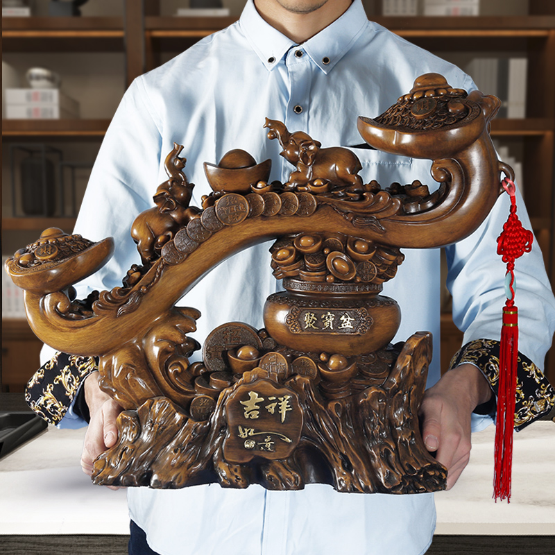Auspicious and wishful elephant decoration lucky treasure pot housewarming home furnishings modern Chinese wine cabinet living room decorations