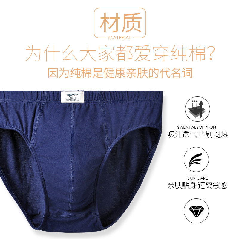 Septwolves Men's Briefs Men's Briefs Black Bottoms 100% Cotton Shorts Breathable Cotton Large Size Summer Pants