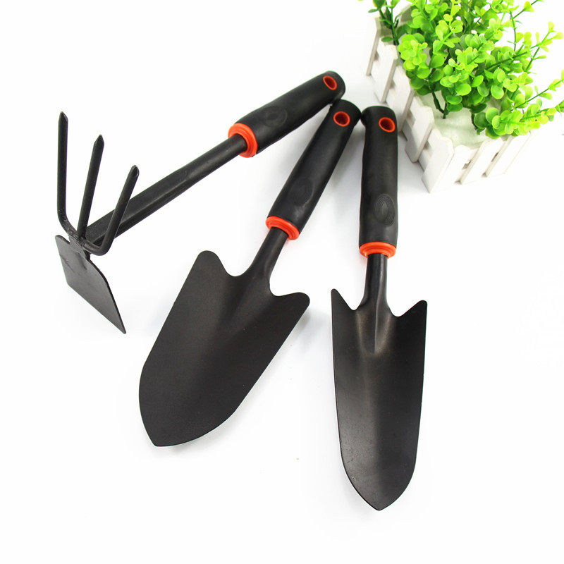 Black rubber handle gardening four - piece pot flower shovel dual hoe iron shovel agricultural gardening toolkit