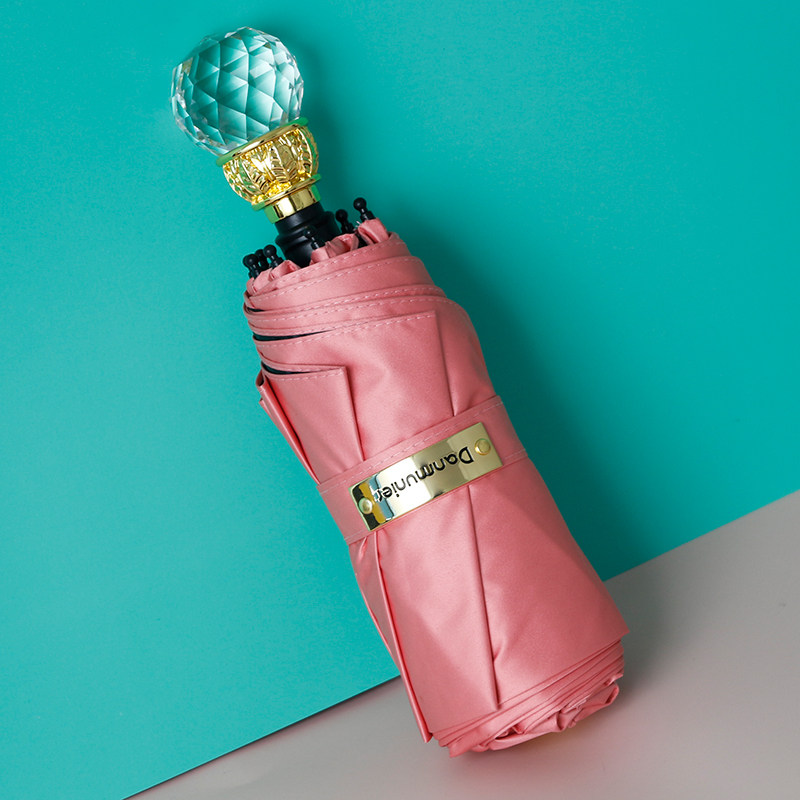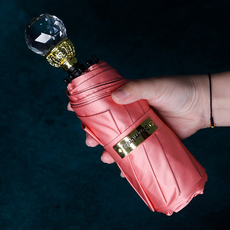 Five-fold umbrella crystal umbrella female rain dual-purpose students small black rubber sunshade sunscreen anti-UVupf50