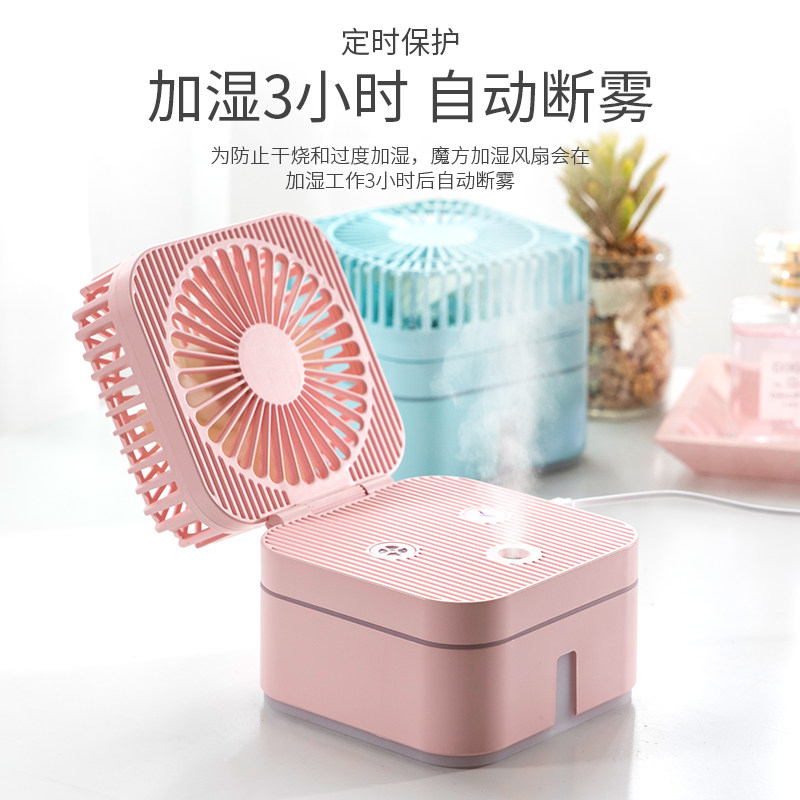 Rubik's Cube Humidifier Fan Mini Portable Spray High Wind Power USB Charging Mute Office Desktop Student