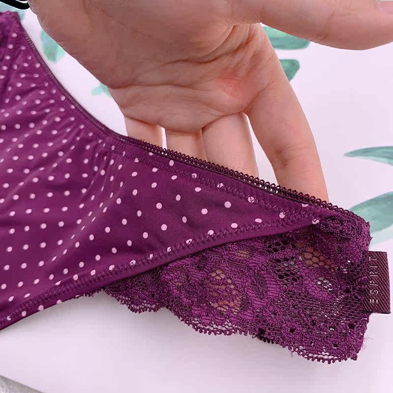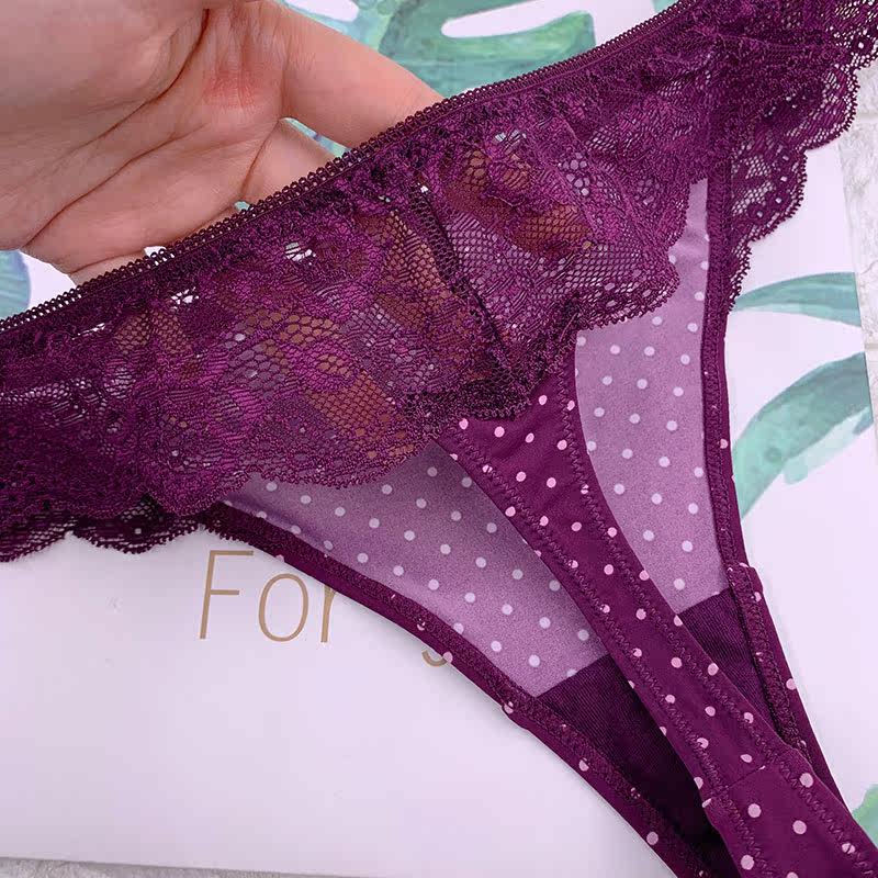 Thong women's ice silk polka dots ultra-thin breathable sexy European and American large size underwear lace seamless hip hip T-character beautiful house