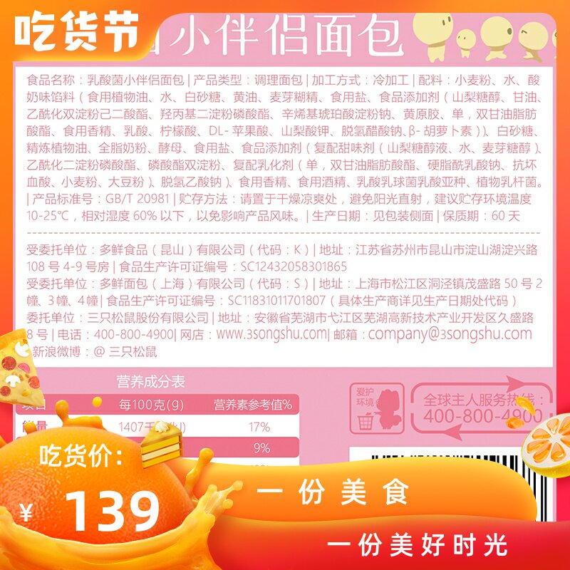 New three squirrel lactic acid bacteria small companion sandwich pocket bread gx2 box student nutrition breakfast snacks