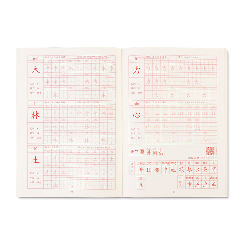 Strong description of the Red Book Kit pupil pen post in the first grade of first grade copy hard pen calligraphy pre-school character book book character book text synchronization