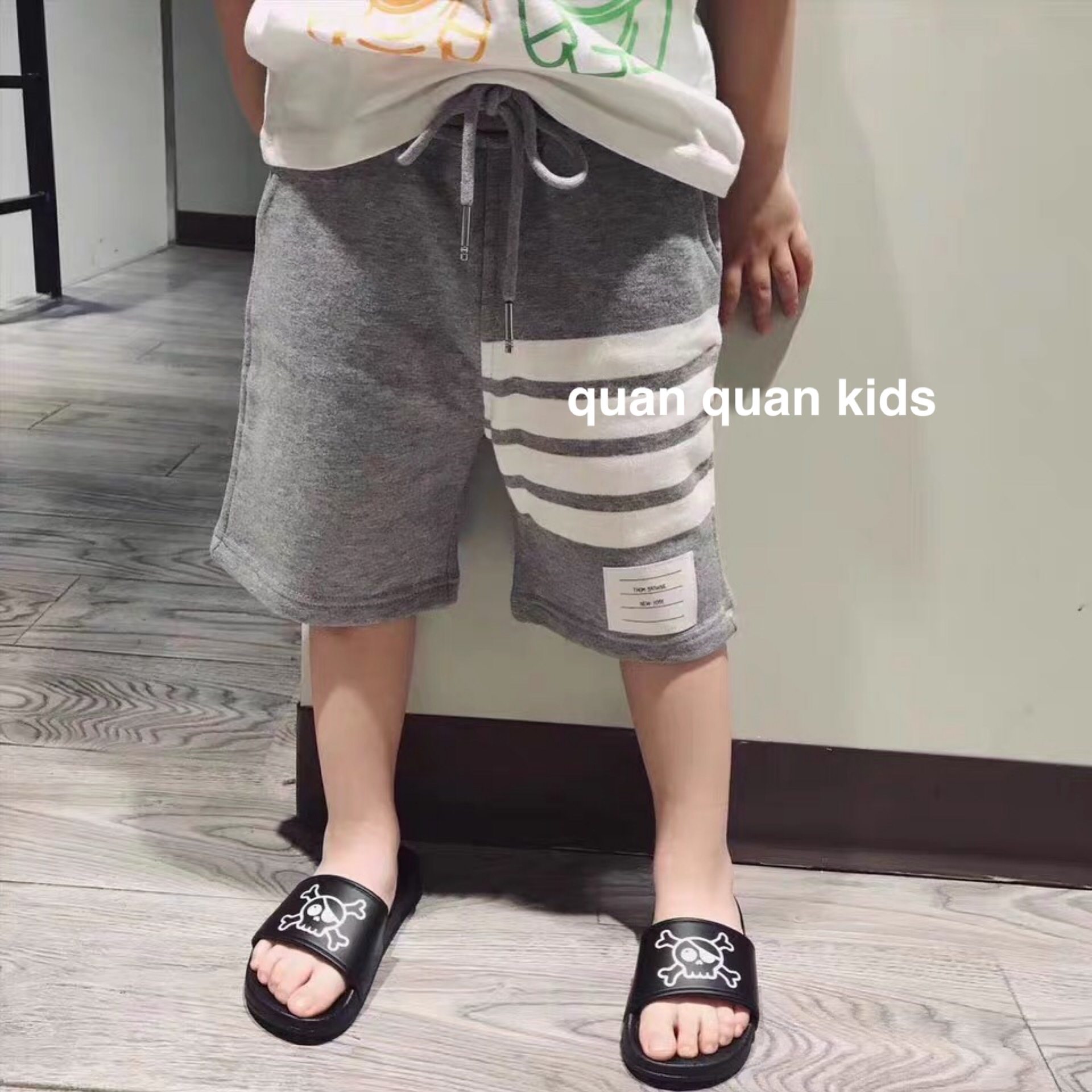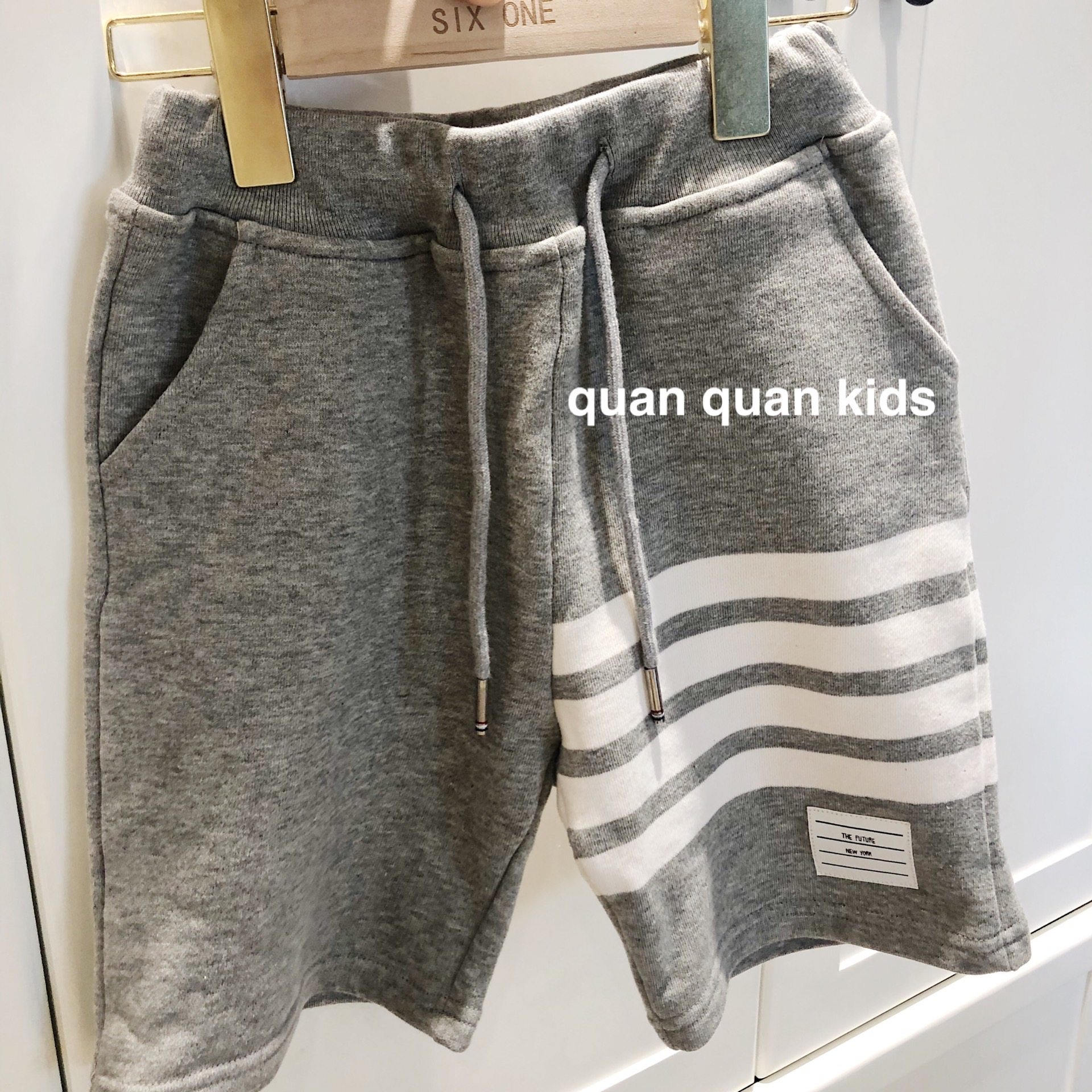 QUANKIDS Japan and South Korea gray TB yarn-dyed shorts soft waxy skin-friendly elastic waist four-bar children's 5-point pants