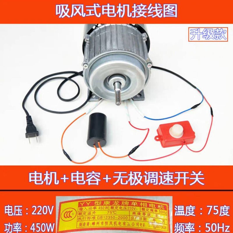 Suction type motor Full set of silver white Suction type motor capacitor Black suction type motor switch Red suction type motor blade silver white