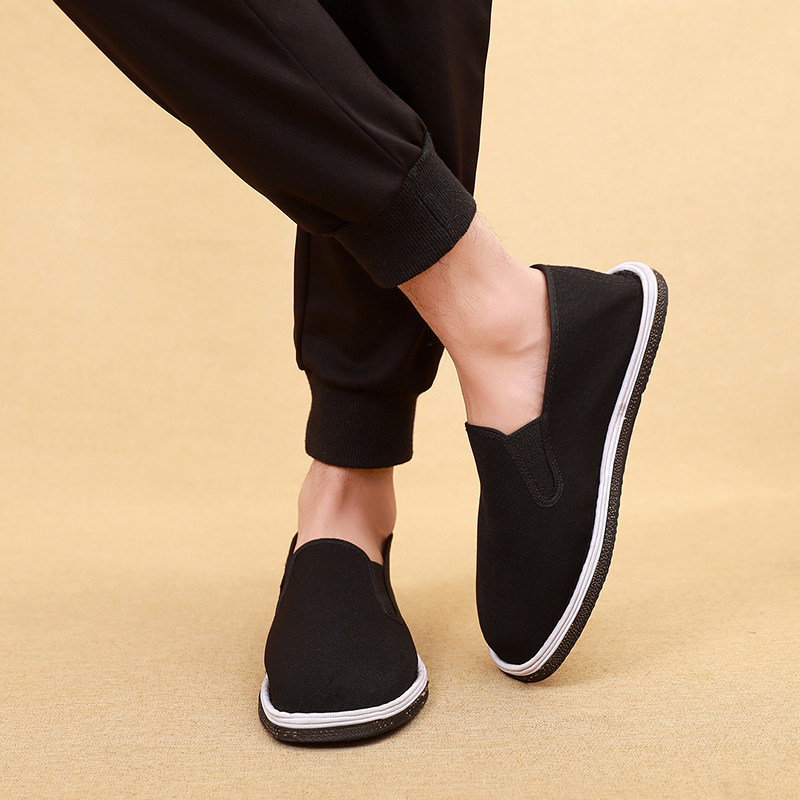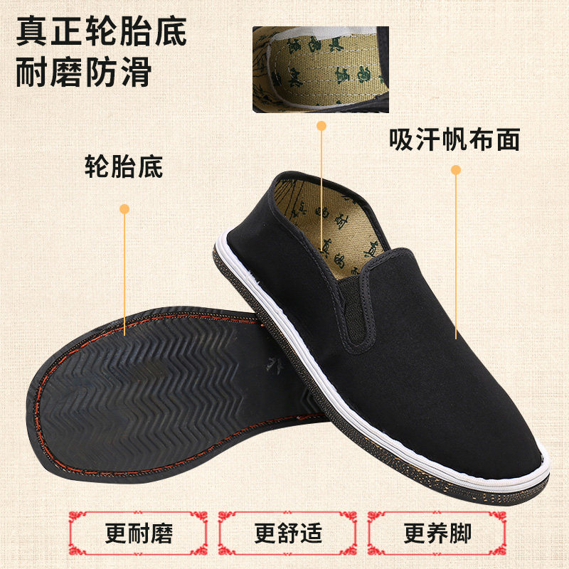 Jiulijian thickened tire bottom old Beijing cloth shoes men's thousand layer bottom black casual shoes middle-aged and elderly one pedal canvas shoes