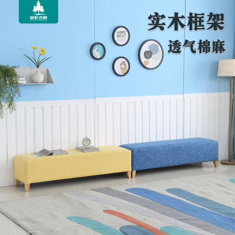 Solid wood modern simple fabric stool early education center sofa stool shop leisure stool home entrance gray shoe stool