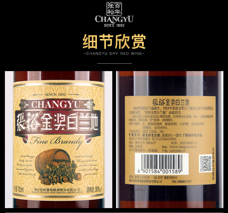 (Changyu) Changyu Gold Award Brandy Grape Distilled Liquor Domestic Wine 38degree single 700ml