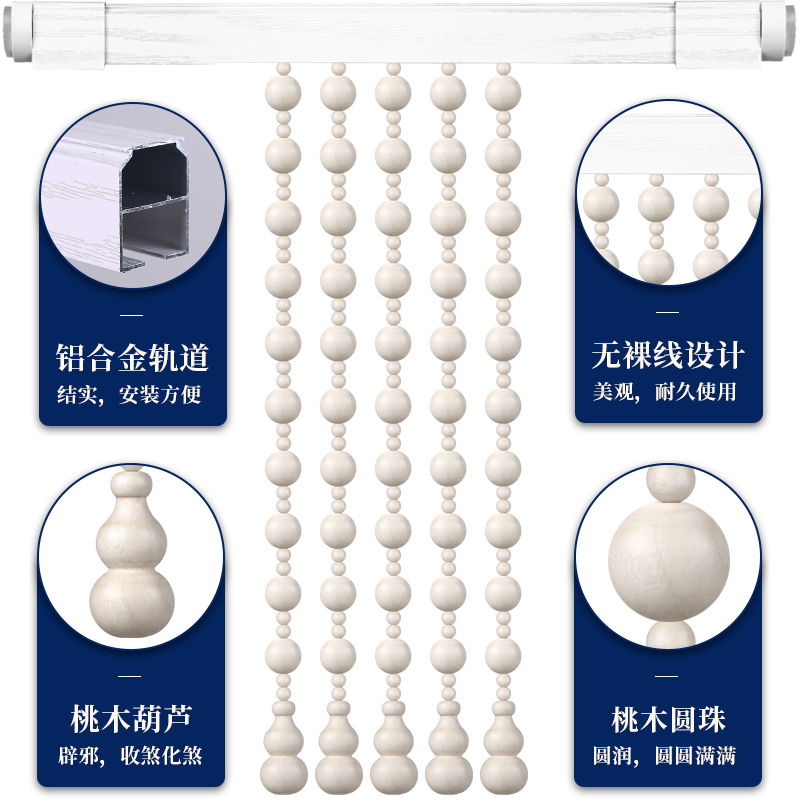 Bead curtain white peach wood beads new type of entrance aisle partition curtain Home bedroom bathroom free punching half door curtain