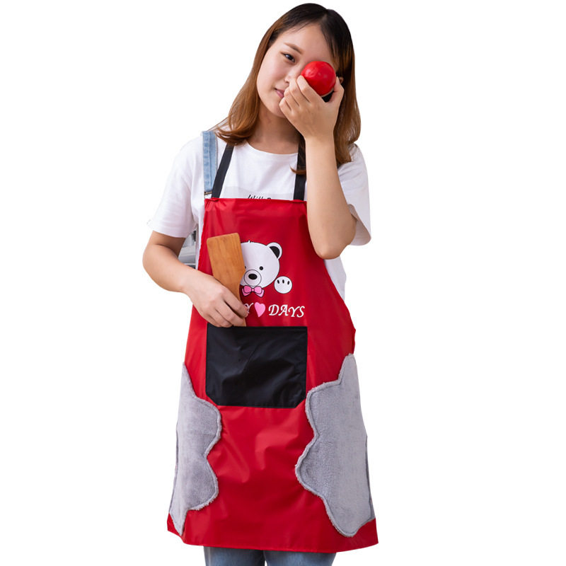 Bear cartoon hand wipe apron Household kitchen waterproof and oil proof fashion men and women Korean adult cover apron