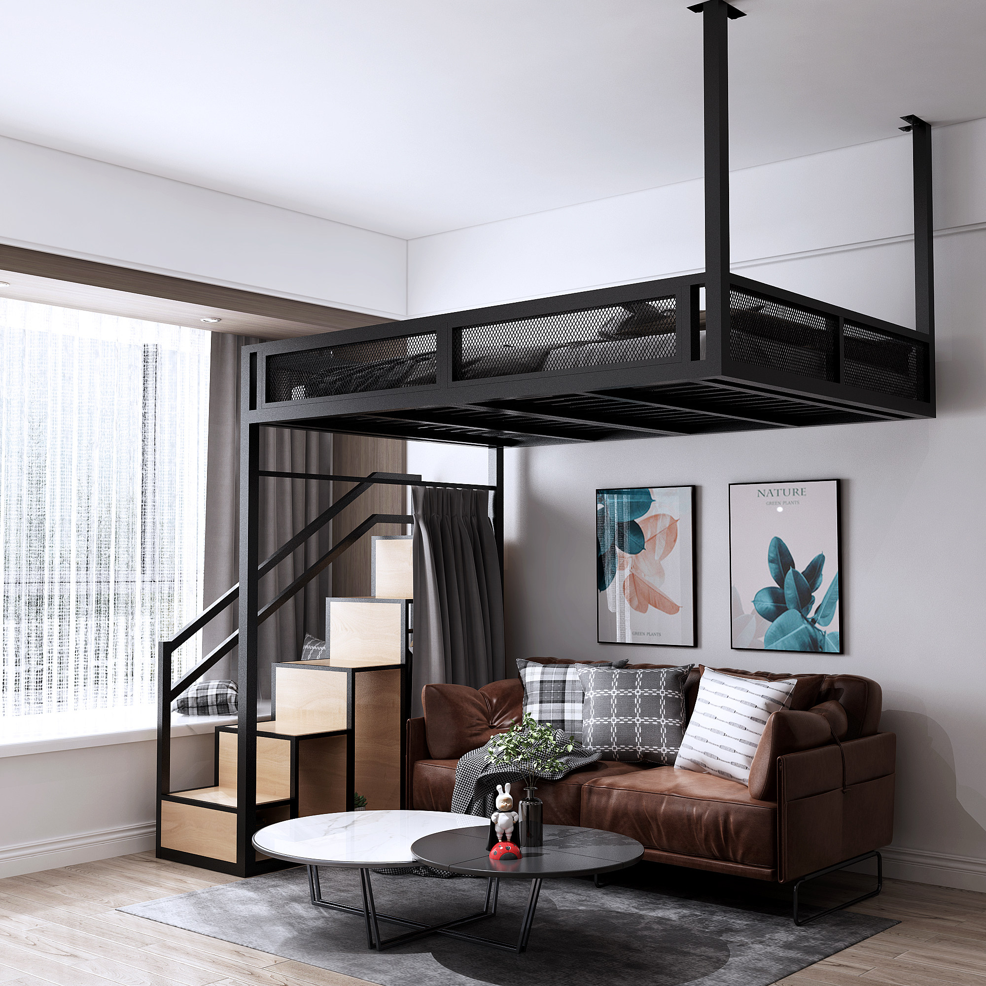 Modern small apartment loft bed hanging wall bed wrought iron elevated bed double bed dormitory apartment creative hammock