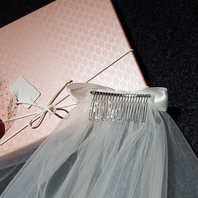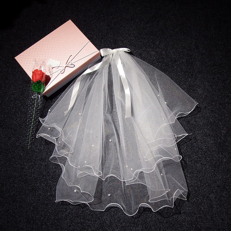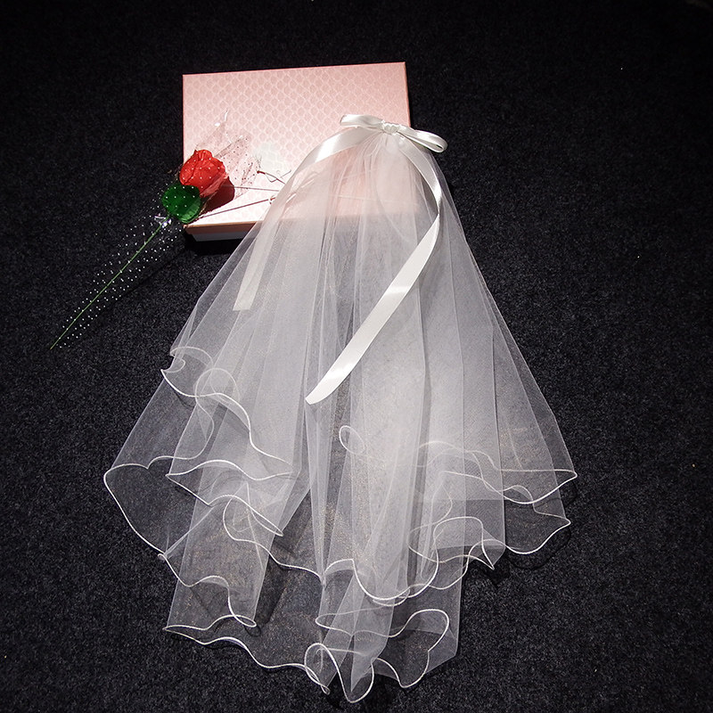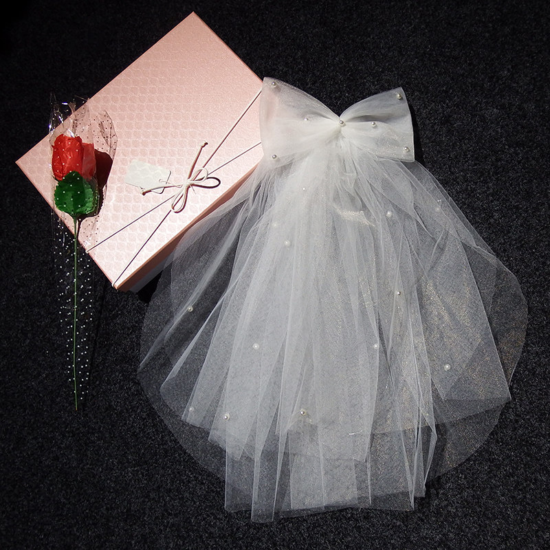 Mother daughter parent-child short-head yarn bride wedding main wedding dress butterfly knot headscarf Neckline Red Photo Prop