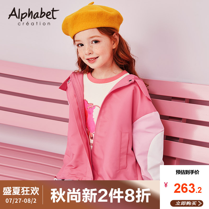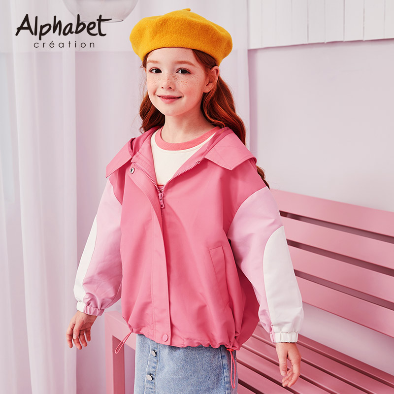 Girls ' coat spring and autumn 2021 new large children's clothing long version hooded trench coat color matching net red tide ocean school Korean version