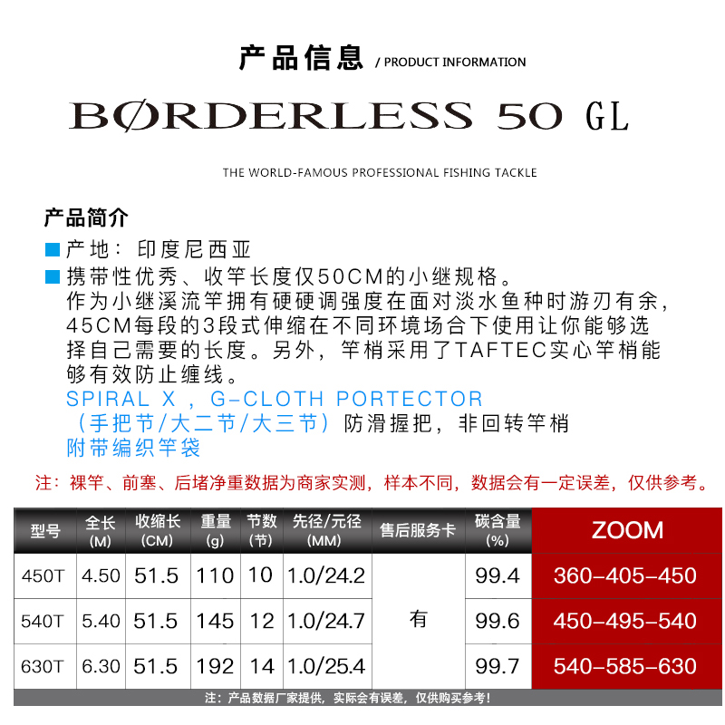 SHIMANO Shimano Bo master 50GL stream rod BORDERLES Xiaoji Zhen-out Taiwan fishing carbon hand rod
