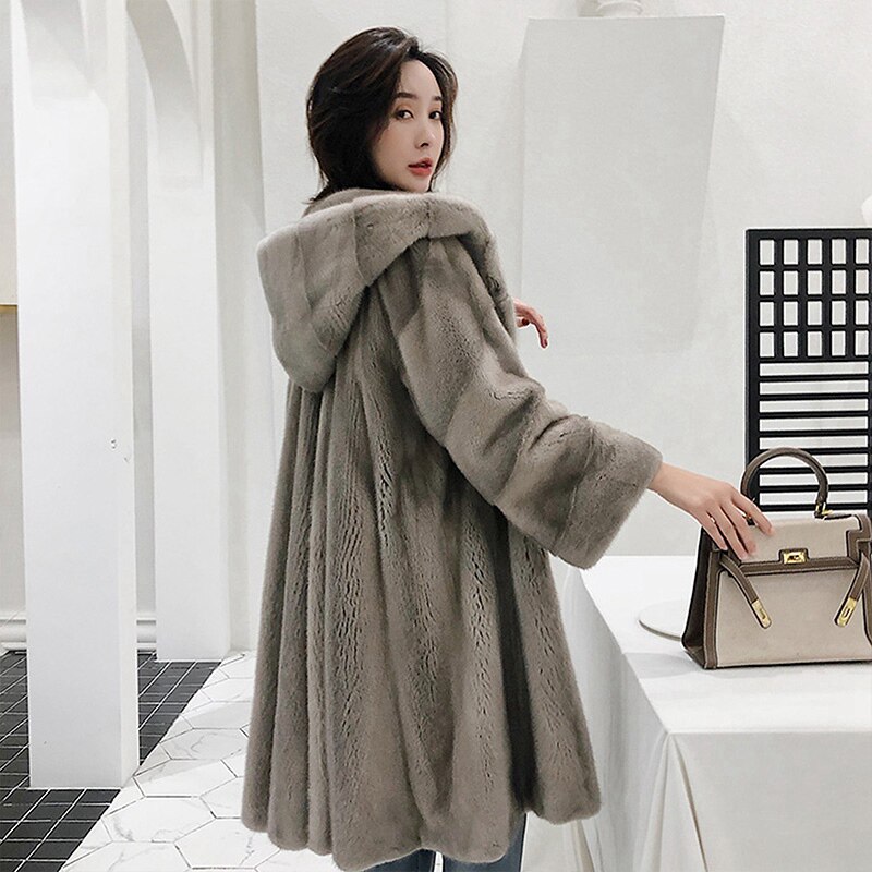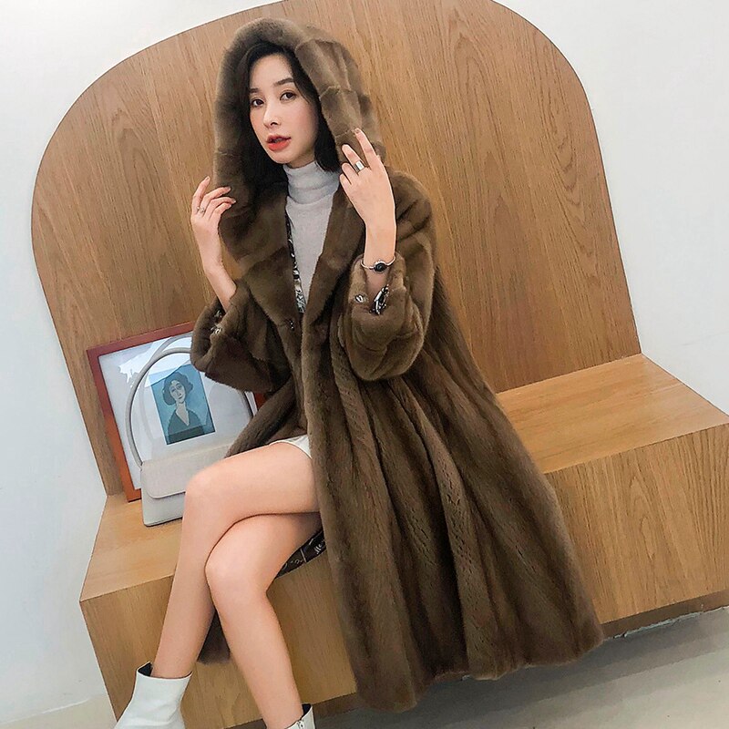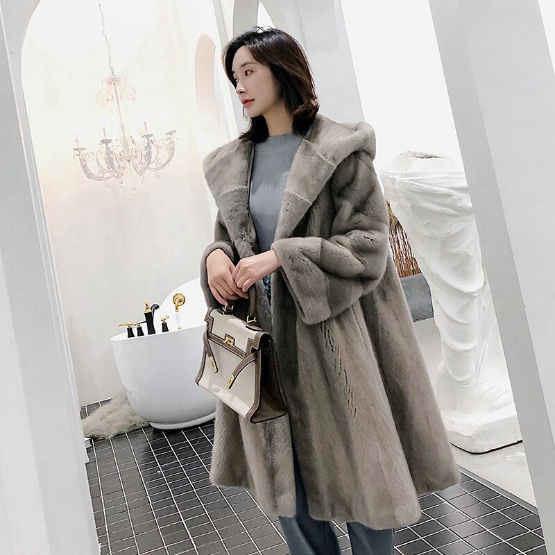 2021 whole Marten hooded mink coat women velvet furs fashion loose Mank fur coat long version