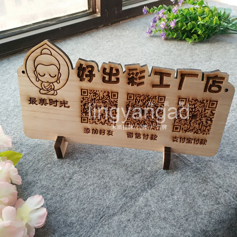 Custom woody personality collection of money code WeChat two-dimensional code swing table engraving creative cartoon collection code wooden card payment card