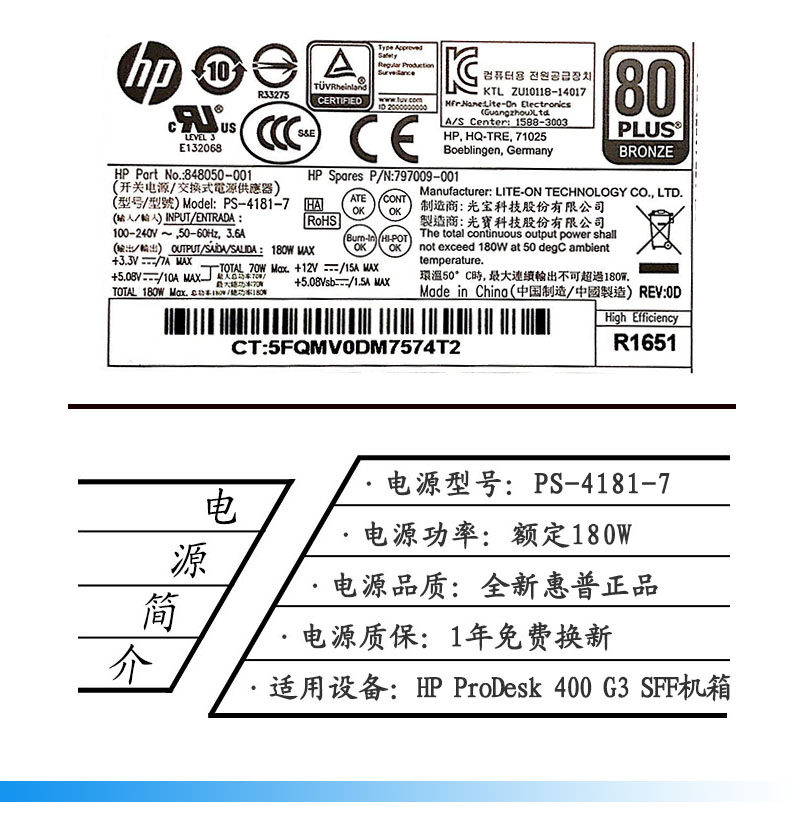 New original HP PS-4181-7 General PCE019 DPS-180AB-20A 400G3SFF small power supply