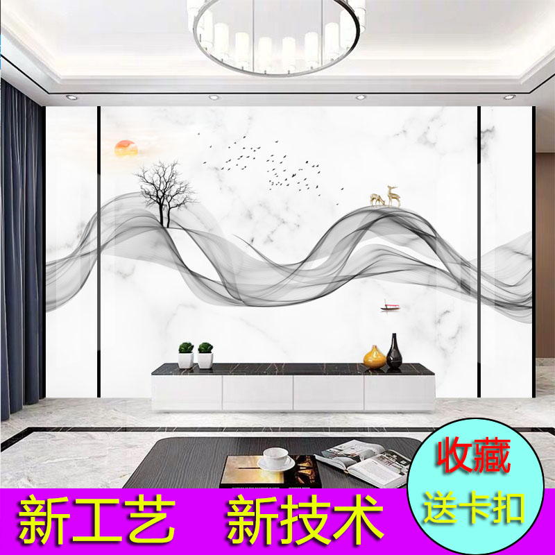 Custom marbling bamboo fiberboard TV background wall integrated board seamless splicing wall panel highlight painting quick installation