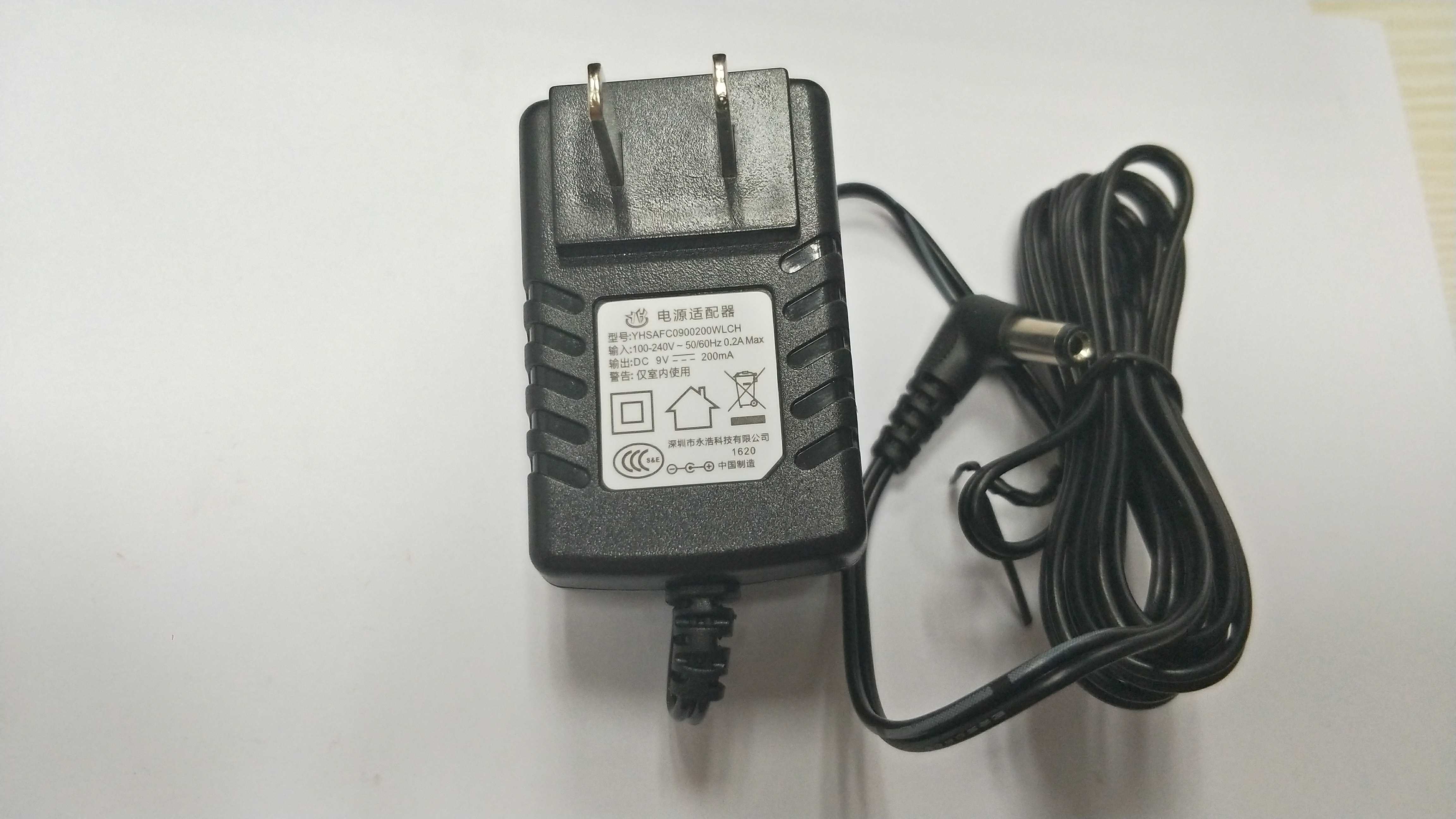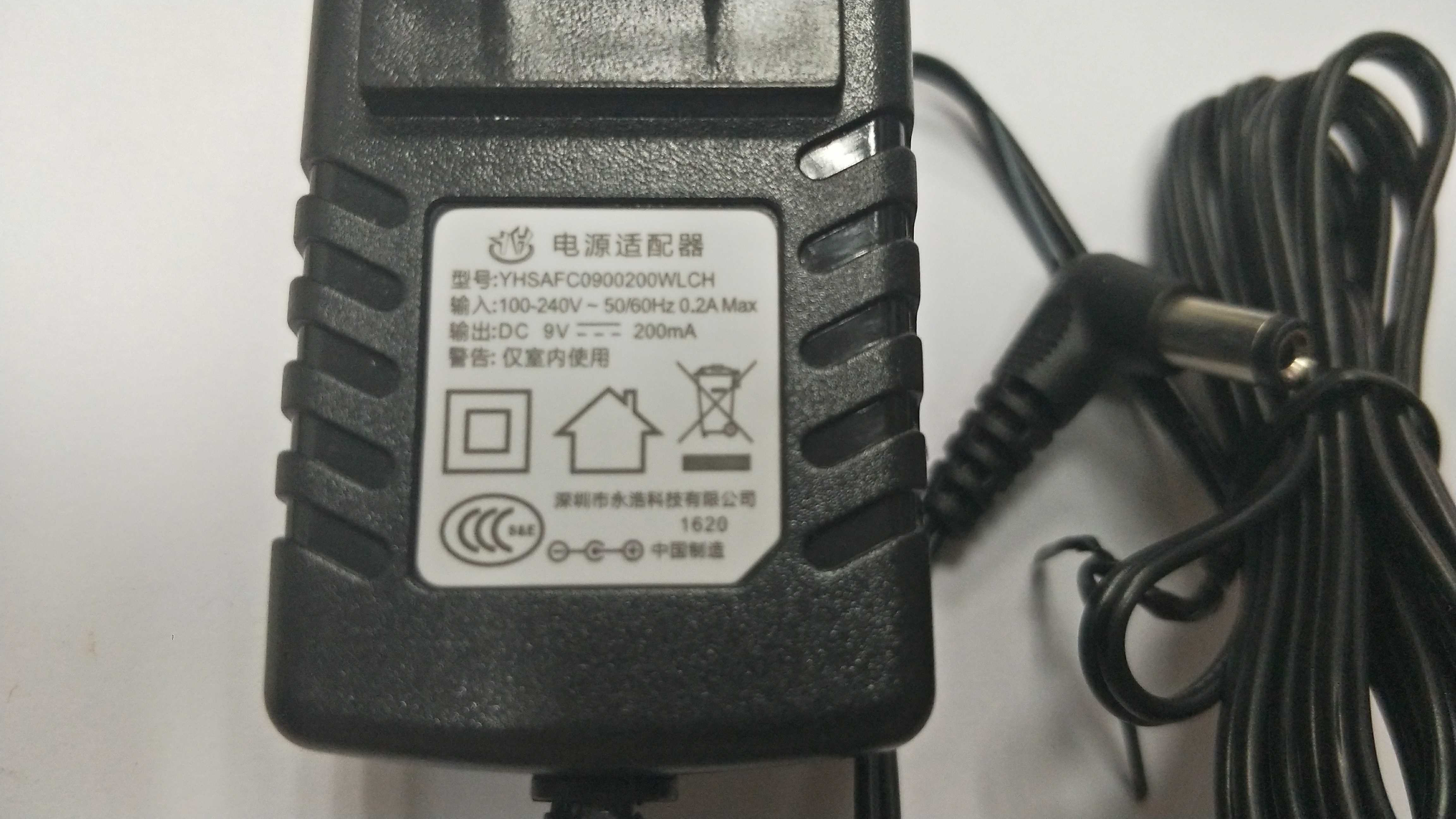 Power adapter Output DC 9V——200mA Input 100-240V~50 60Hz 0 2A Max