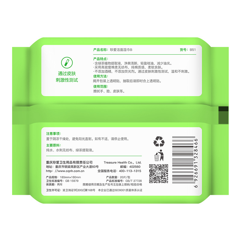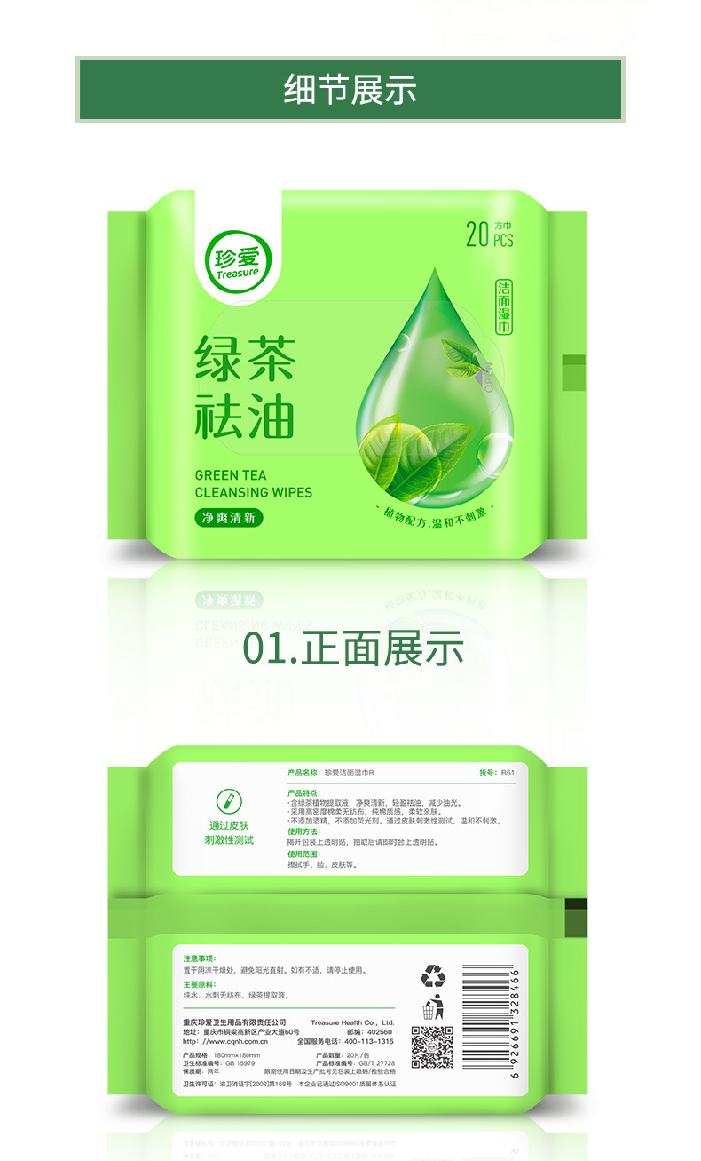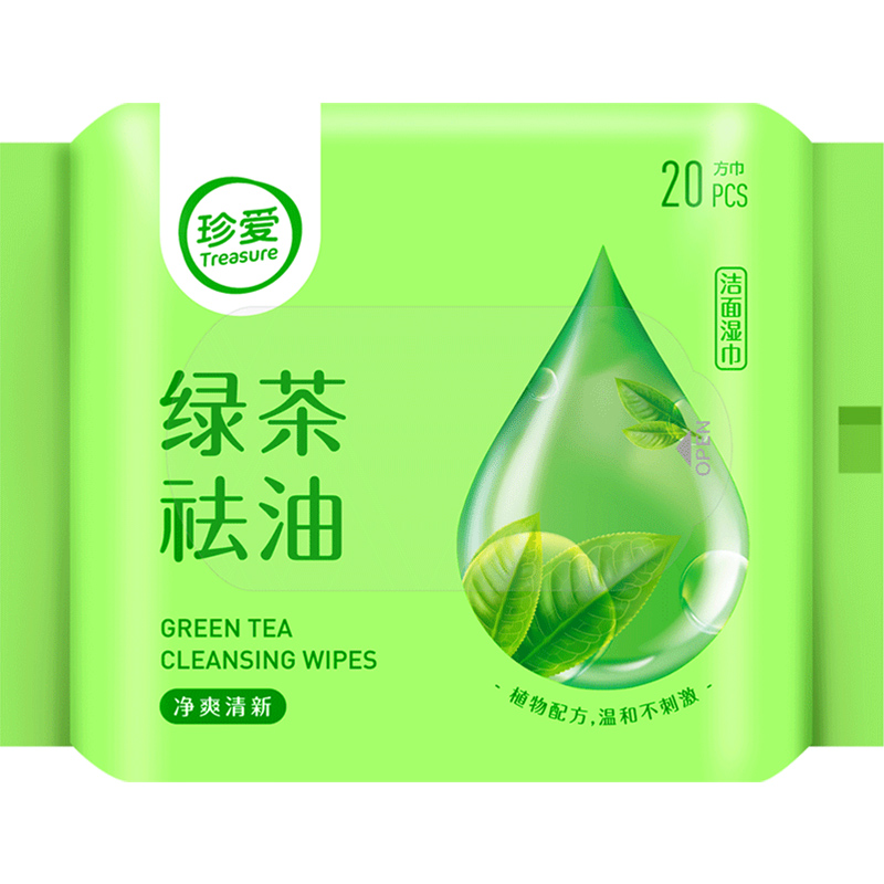 Green tea scrubbed face to sweat towel with oil cleaning face and bag with wet wipes 20 x10 pack