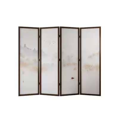 New Chinese screen partition modern simple entrance porch folding mobile bedroom hotel shelter solid wood landscape painting