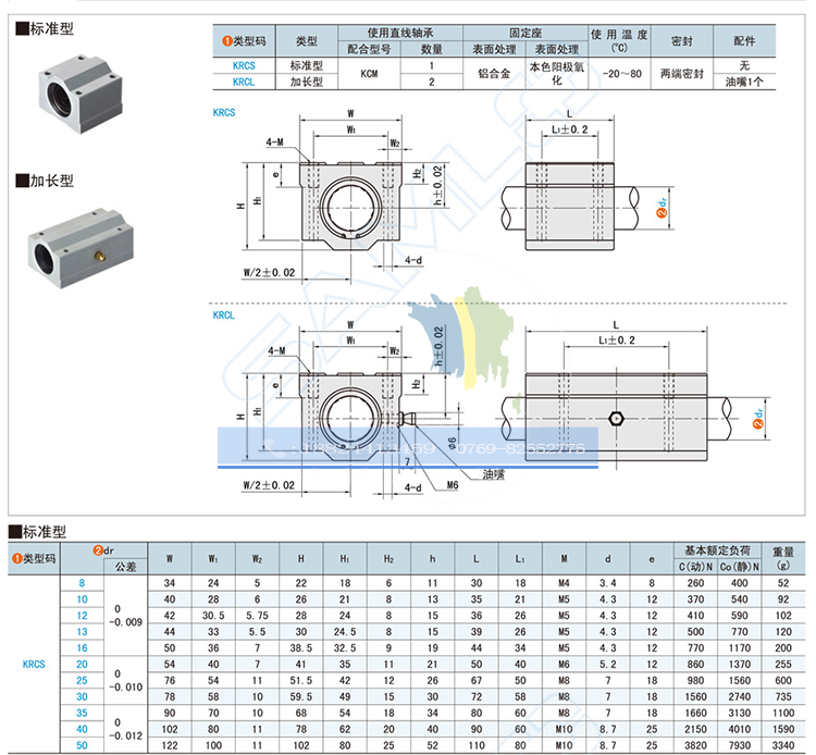 Cabinet linear bearing KRCS8 10 12 13 16 20 25 30 40 50
