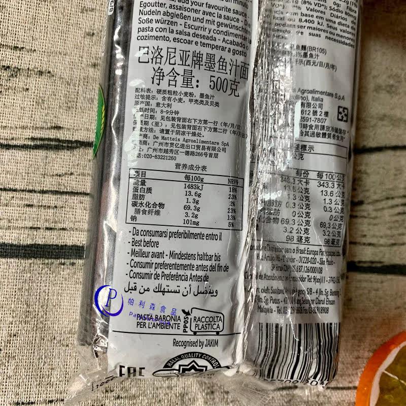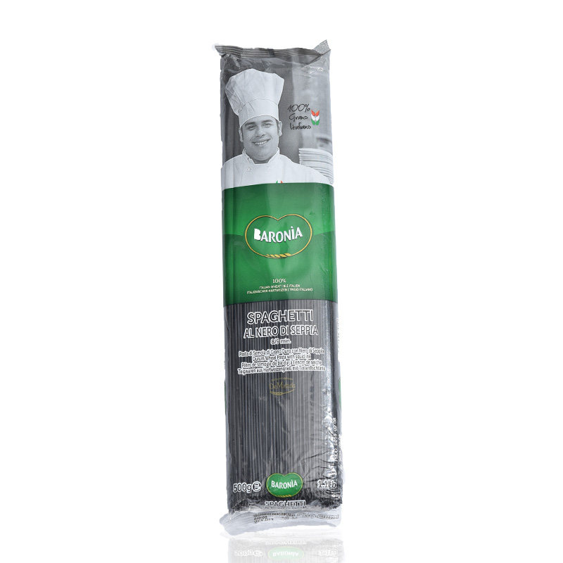 Baronia brand cuttlefish juice noodles Imported from Italy 500g straight shape pasta Spaghetti pasta Edible noodles