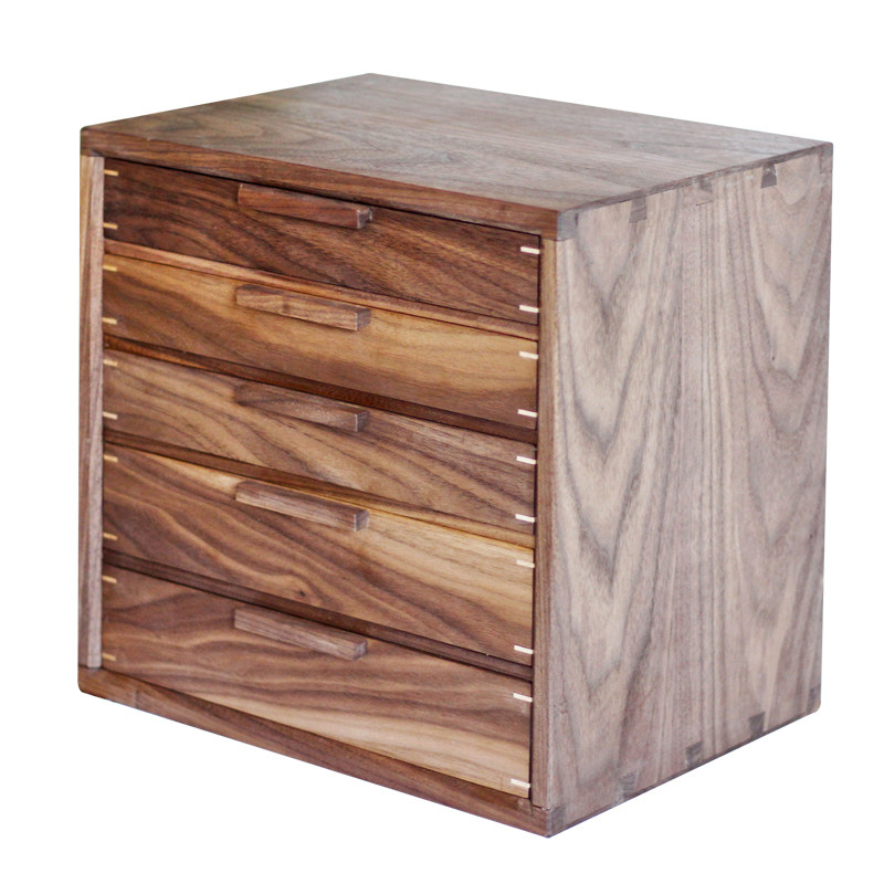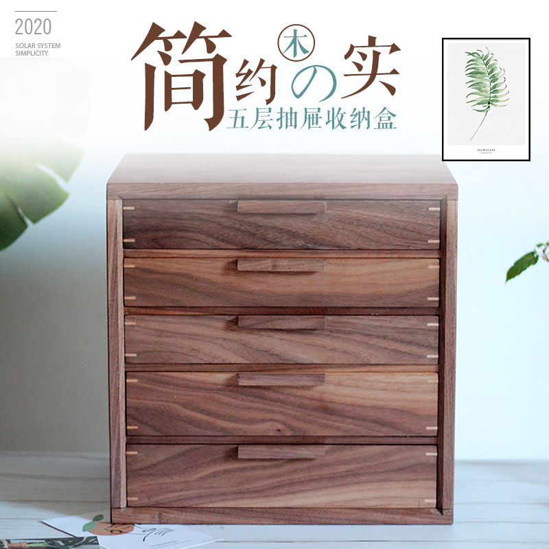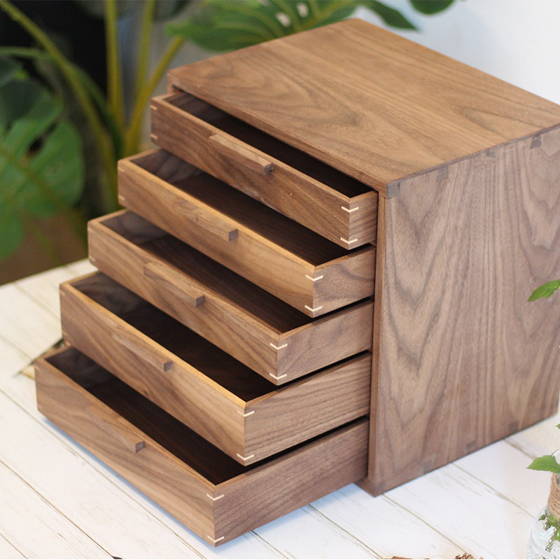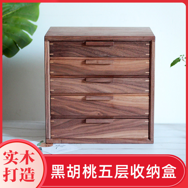 Desktop storage cabinet Black walnut solid wood jewelry storage cabinet Traditional dovetail structure full solid wood five-bucket small cabinet