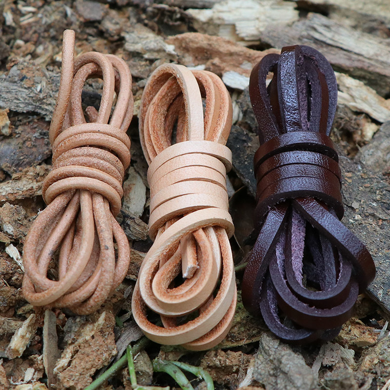 bushcraft outdoor camping leather head layer cow leather rope key buckle braided rope retro hand refined pendant wire rope