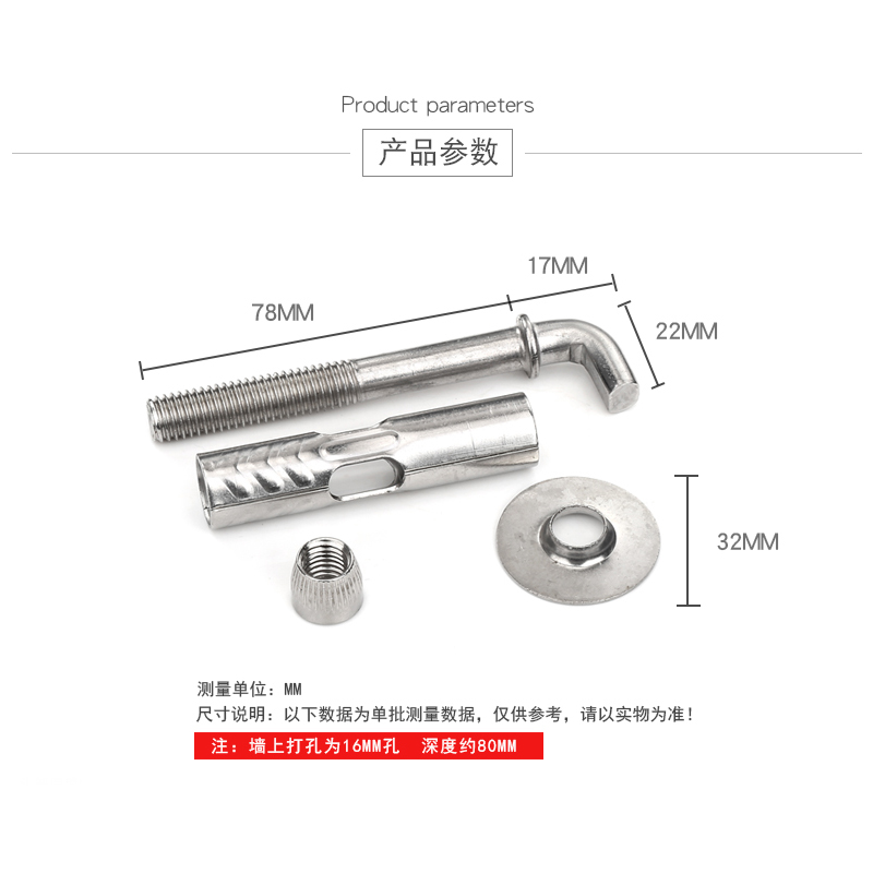 M10 * 100 (galvanized material) load bearing 100L (2 supports) M10 * 120 (galvanized material) load bearing 120L (2 supports) M10 * 16