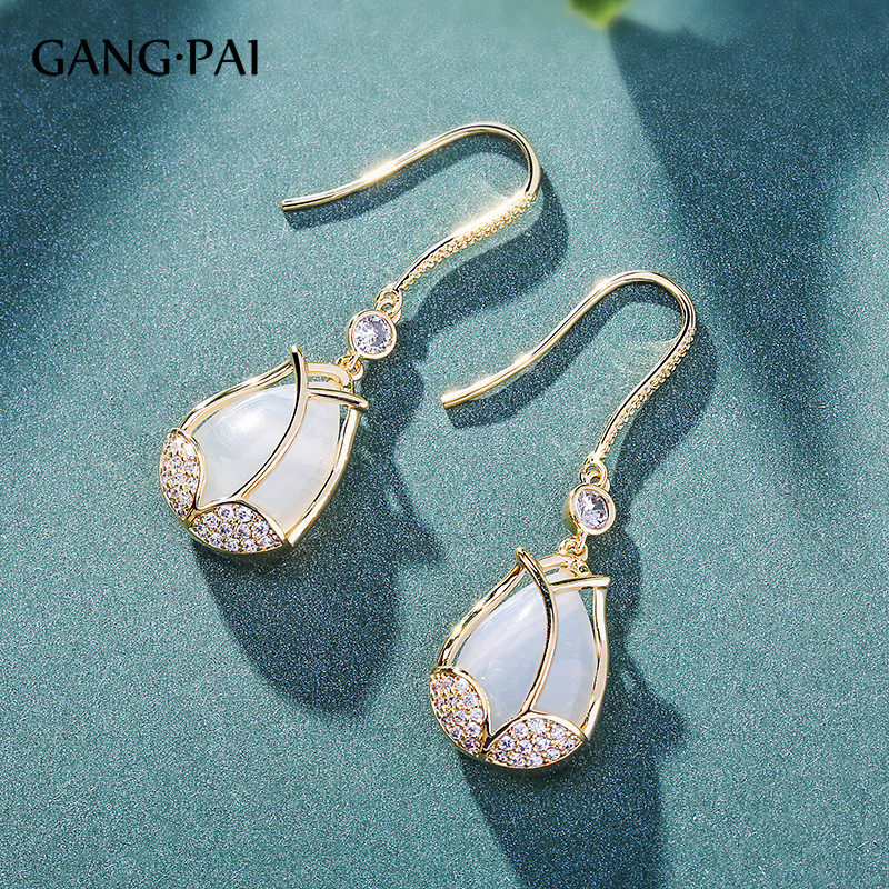 Hong Kong school Korean temperament tulip earrings 2021 new trend net red long version earrings simple personality earrings women