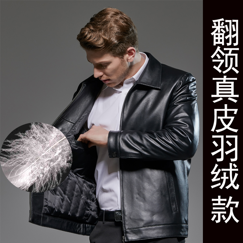 Men's large size leather leather leather collar with middle aged sheep leather jacket gats up overweight overweight cotton loose down jacket