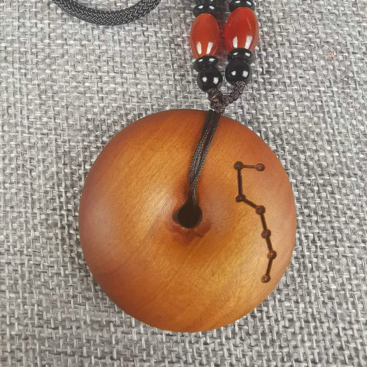 Taoist Supplies Lightning Strike Date Wood Mountain Pendant Comeback Gossip Copper Money Round Safe Button 7 Stars Green Button