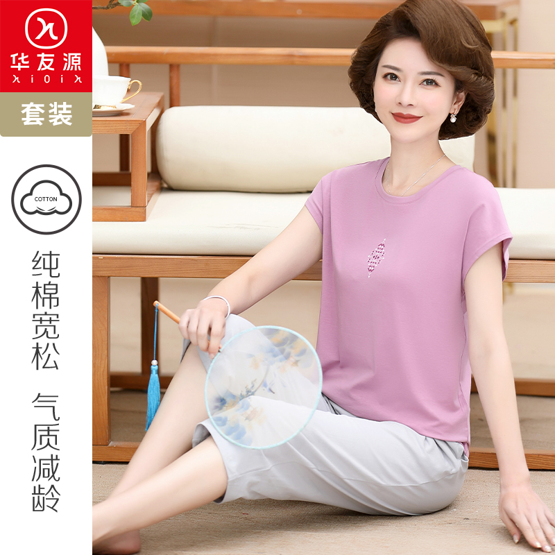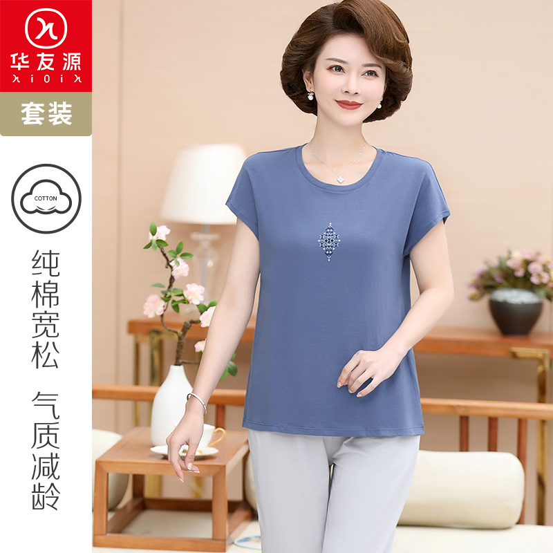 Huyouyuan Sources Spring Summer Xinjiang Pure Cotton Pyjamas elderly short sleeves Loose Mother's Home Bedroom Pants Two Style Suits