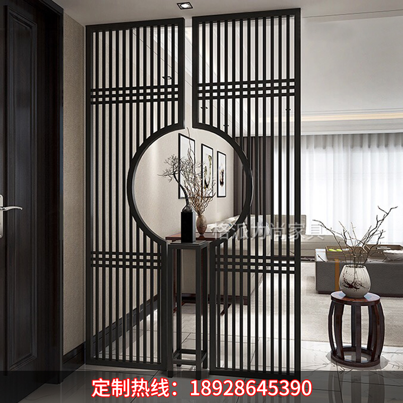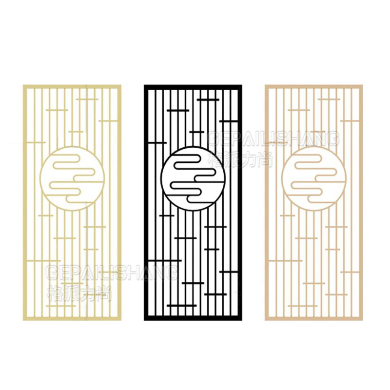 Stainless steel screen partition living room Titanium alloy hollow carved hotel lattice Modern light luxury metal new Chinese grid