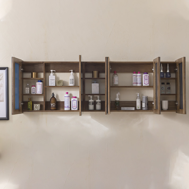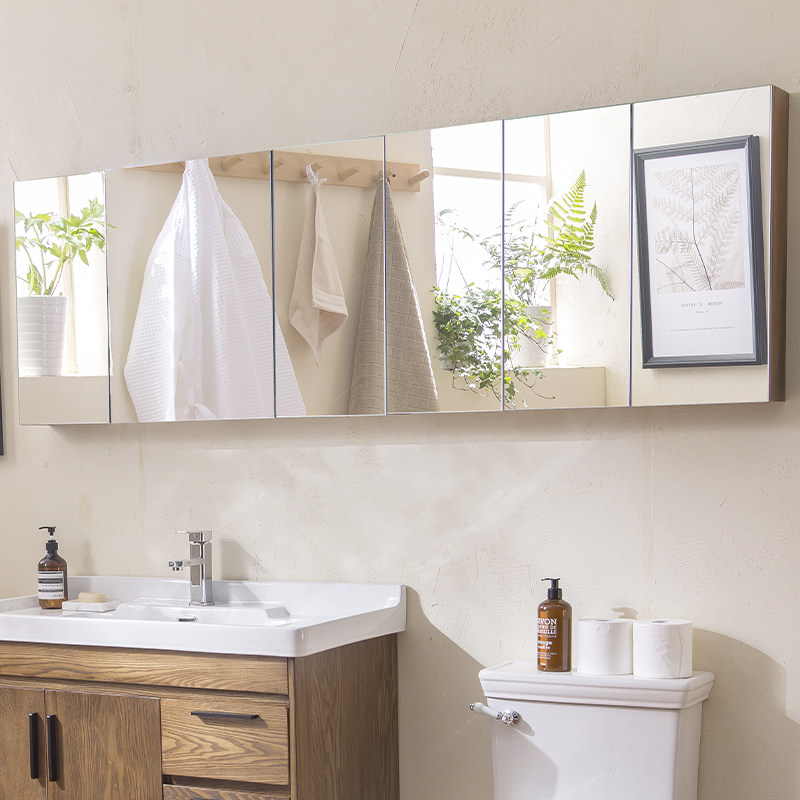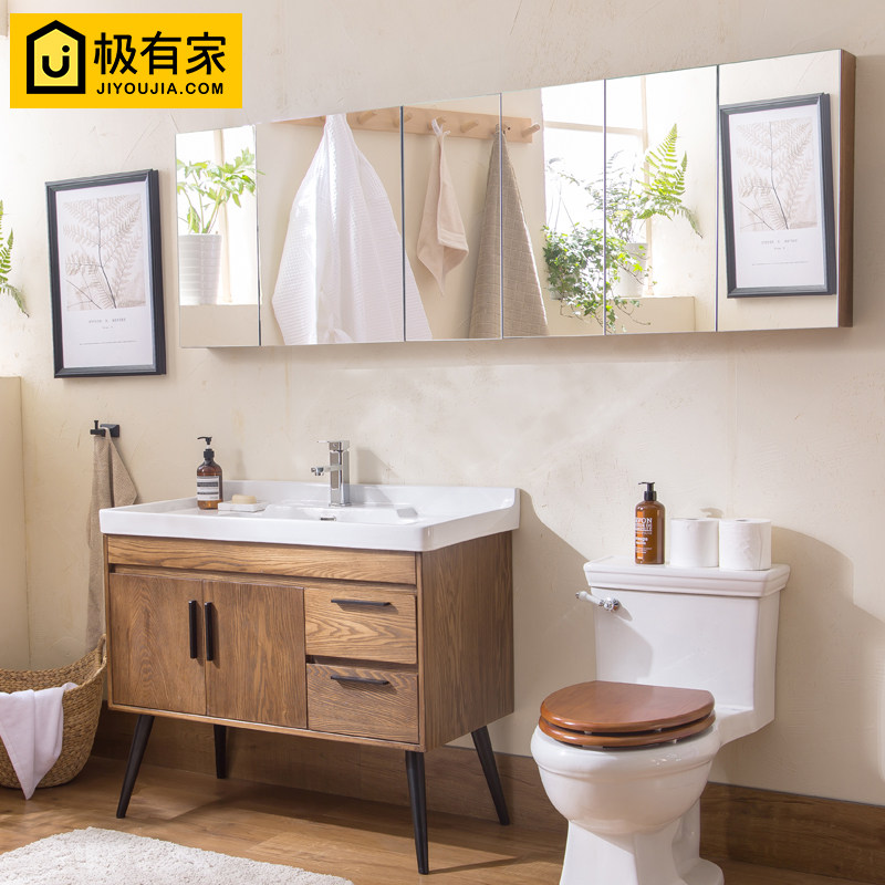 Large mirror cabinet Nordic Bathroom mirror cabinet Powder Room mirror box with lamp Toilet Wall-mounted mirror with shelf Solid wood