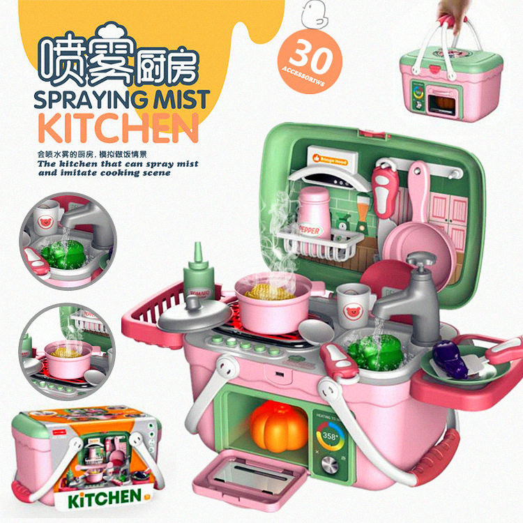 Foreign trade export children's sound and light simulation steam water spray kitchen cooking pretend house wine shopping basket tableware toys