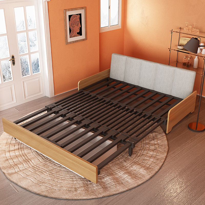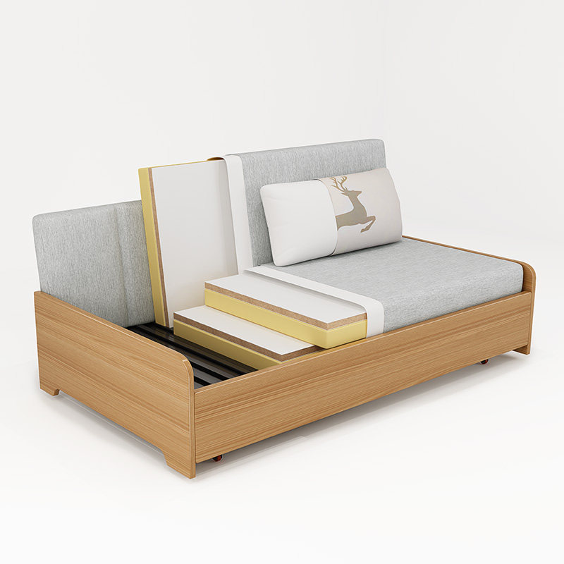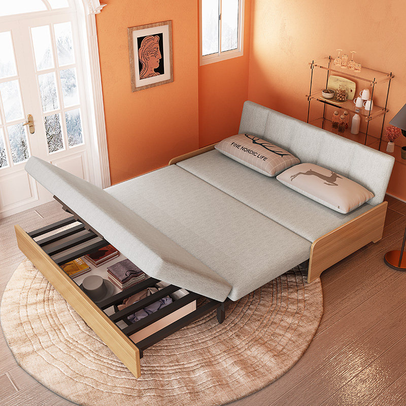 Solid wood sofa bed dual-use storage three-person small apartment simple push-pull double single foldable multifunctional bed