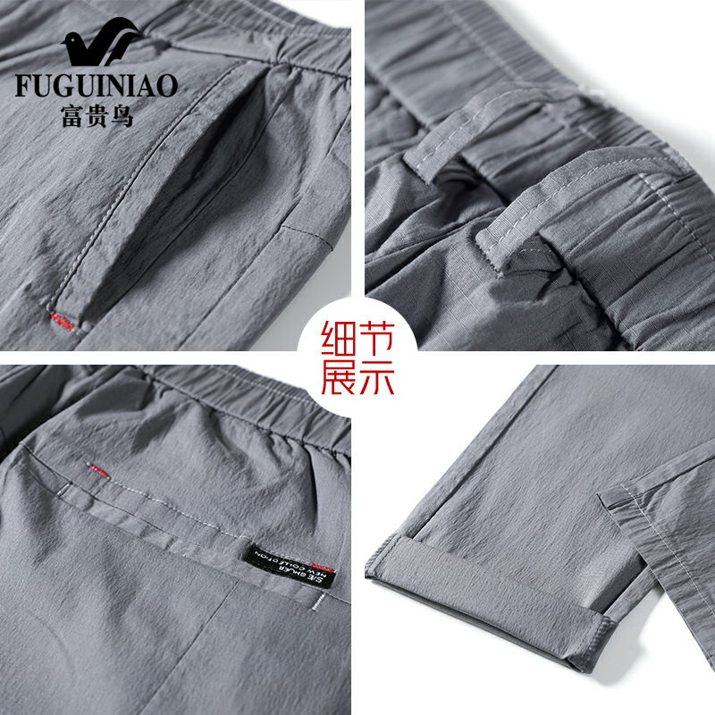 Rich bird casual pants men's ice silk nine-point pants summer thin Korean version of the trend slim small feet wild men's pants