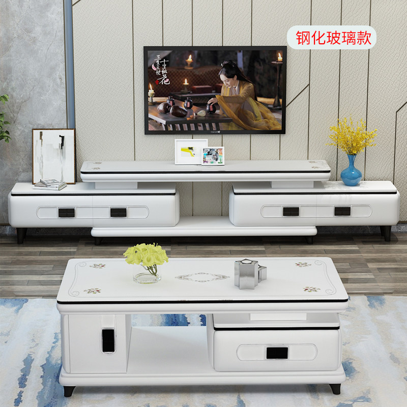 Marble tea table TV cabinet combination telescopic small family modern minimalist Nordic Living room glass TV cabinet tea table