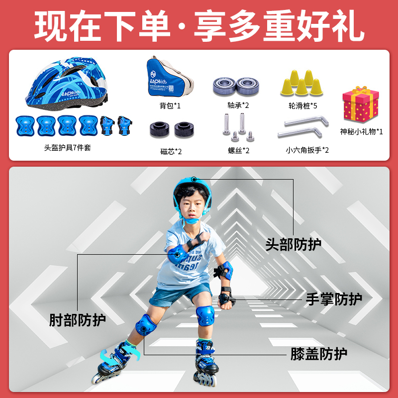 (Enhanced Roller Skates) Blue (Helmet + Six Pieces Of Protective Gear Cover + Original Bag + Giveaway) (Enhanced Skate) Pink (Helmet + Six Pieces of Protective Gear Cover + Original Bag + Giveaway)