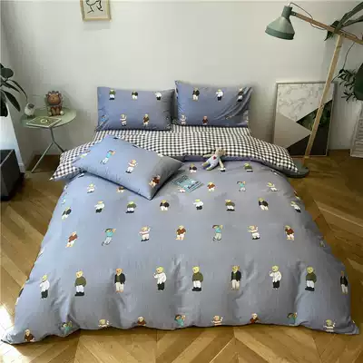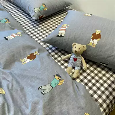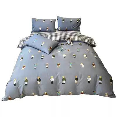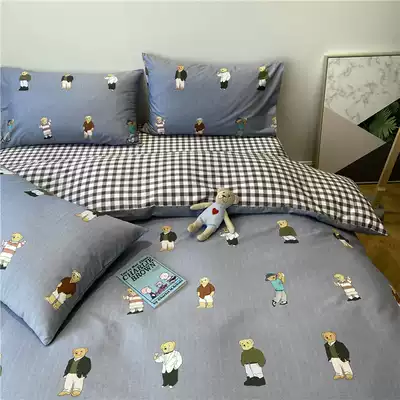 (Toyama Strawberry) Korean Bear Four Piece Cotton Pure Cotton Simple Nordic English quilt cover Sheets