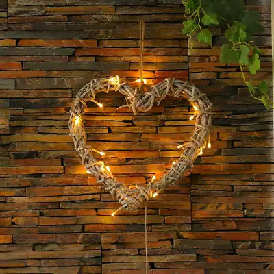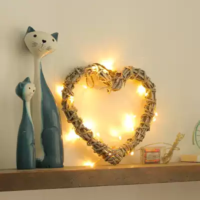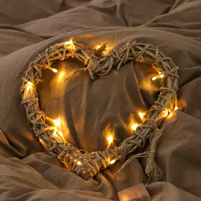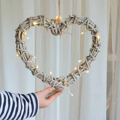 Rattan wall hanging wall decoration pendant Nordic style retro do old heart-shaped LED small lighting room net red shop decoration