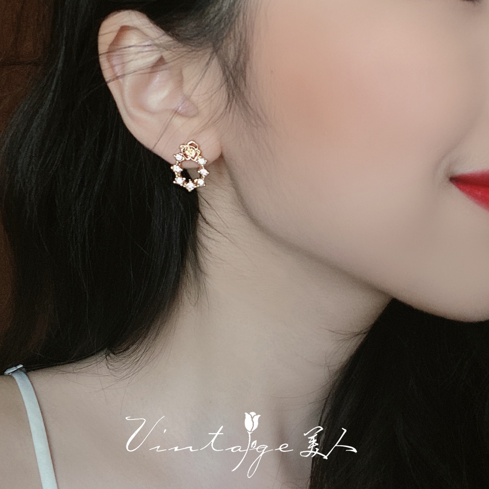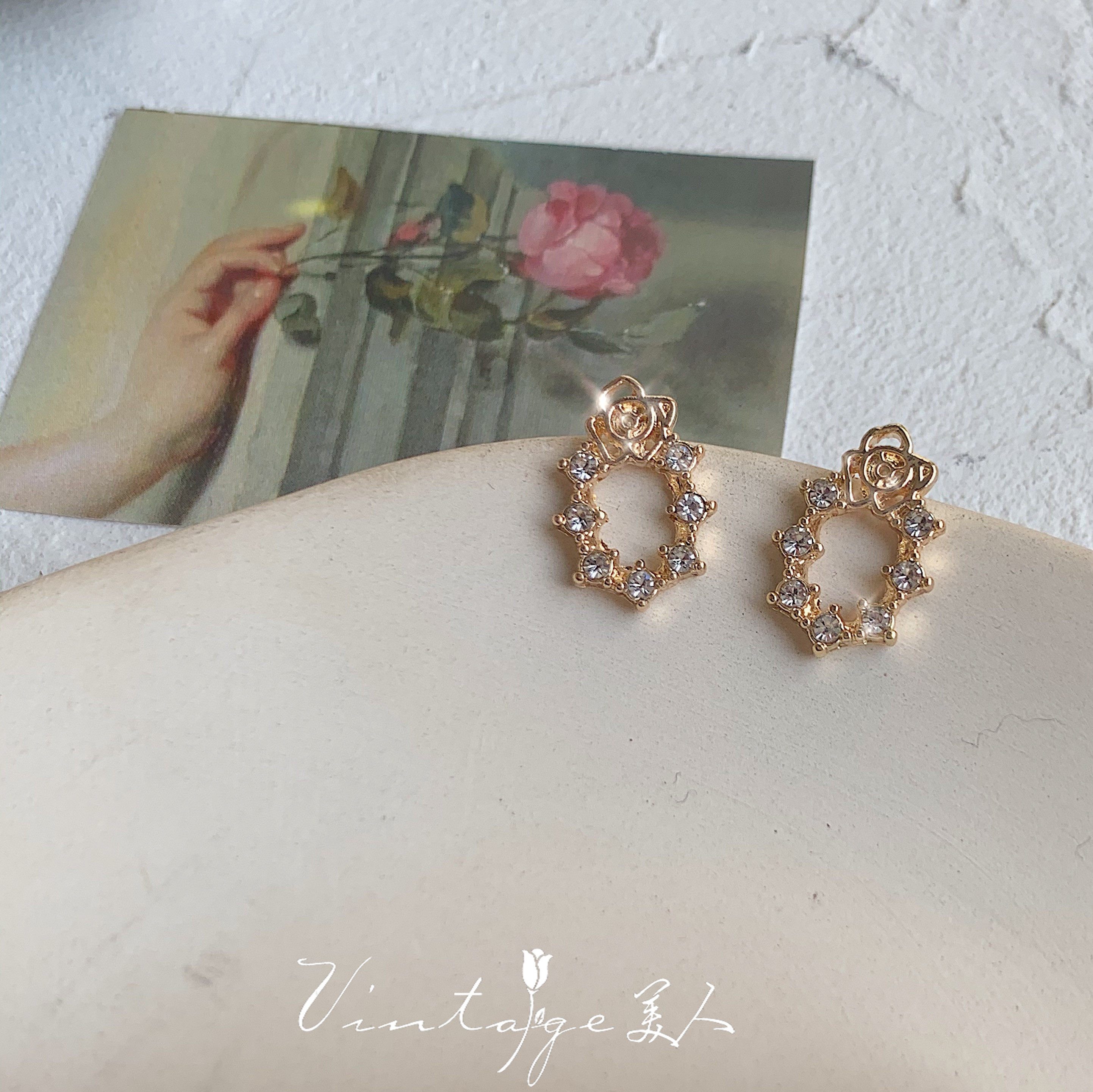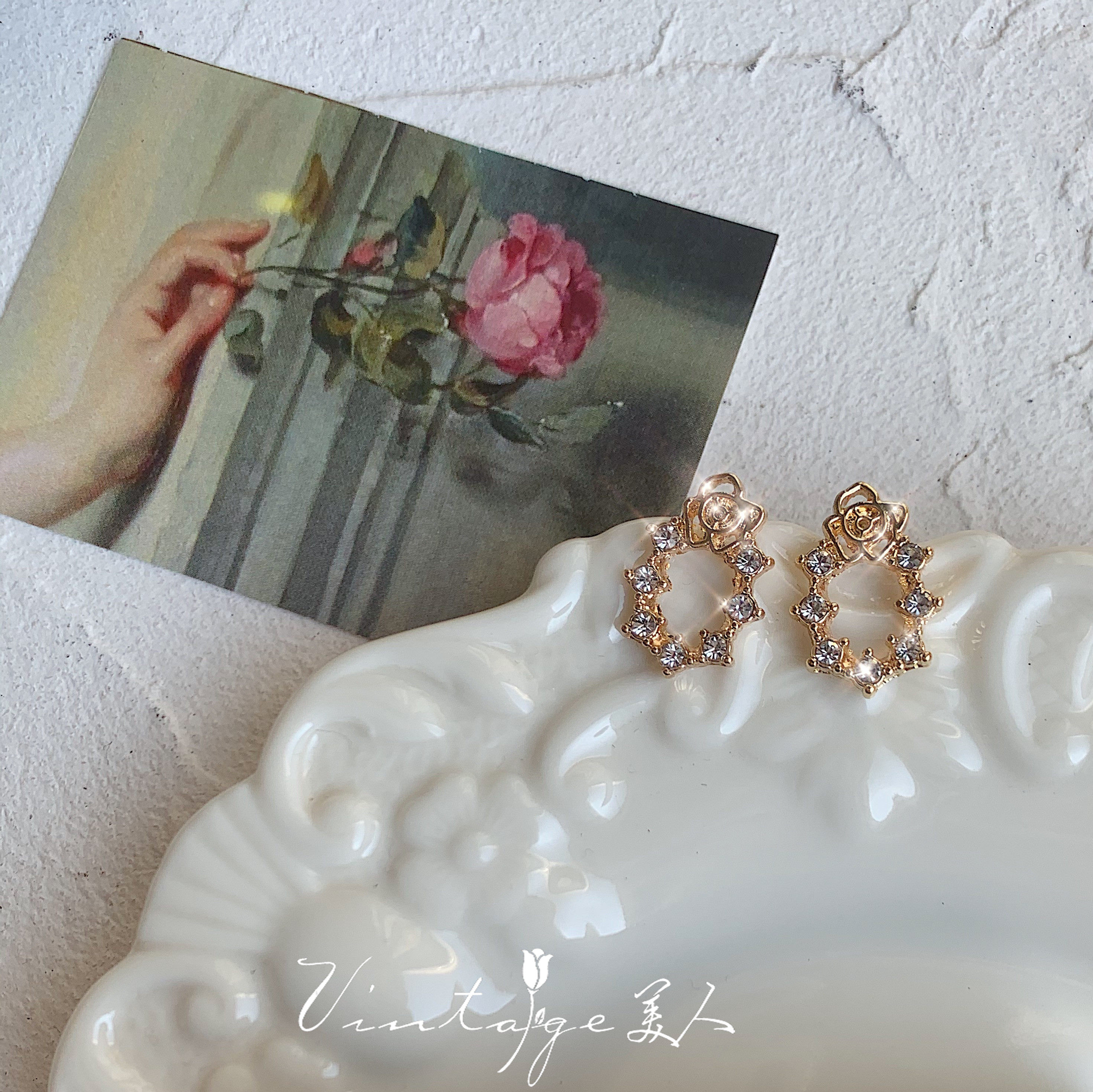 "Picasso Garden" Romantic, Delicate, Elegant, Small and Versatile, Sparkling Diamond Rose Outline Zircon Stud Earrings
