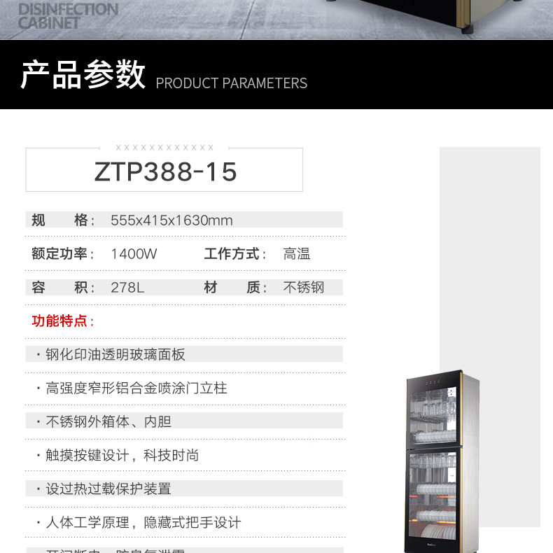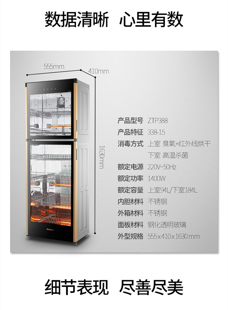 Suki Sochi ZTP388-15 vertical disinfection cabinet 278 l large capacity double door home commercial disinfection bowl tray cabinet